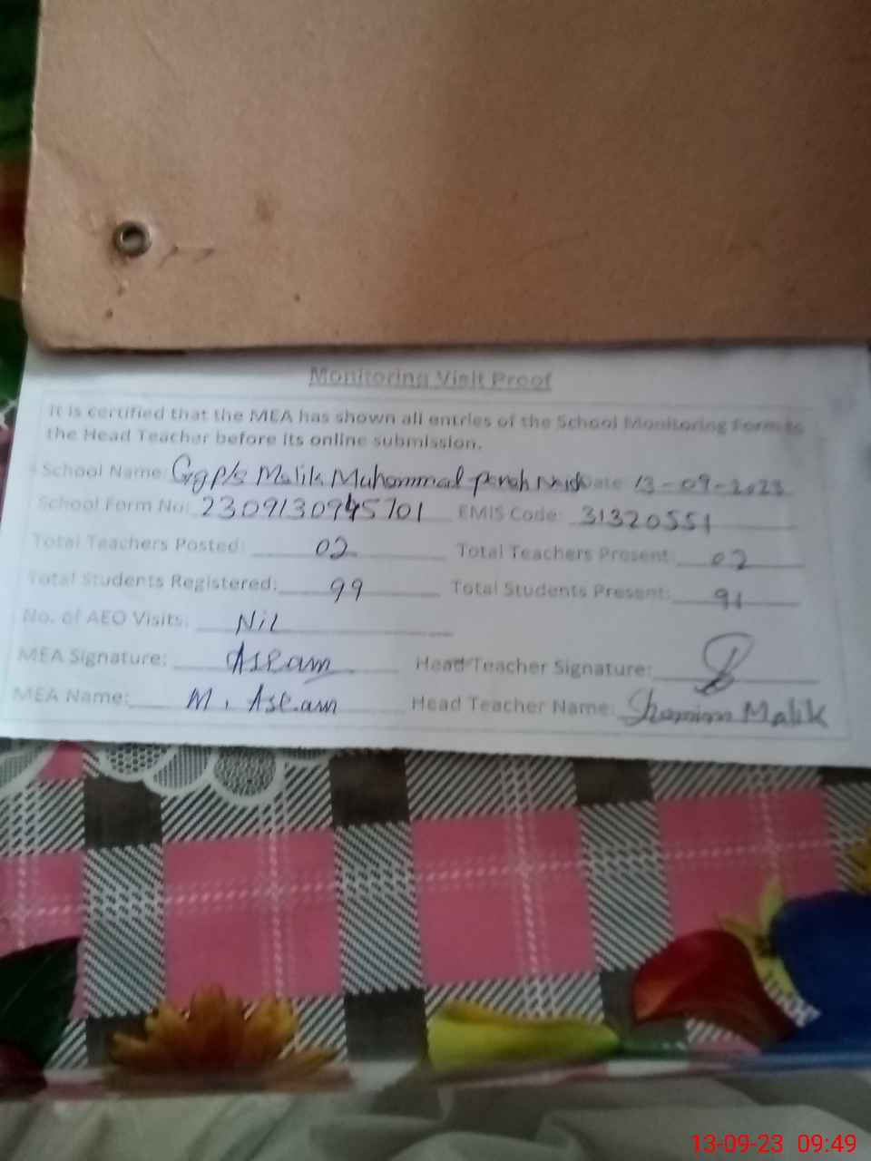 | EMIS Code: 31320551 | Name of School: GGPS MALIK MUHAMMAD PANNAH NAICH | |||