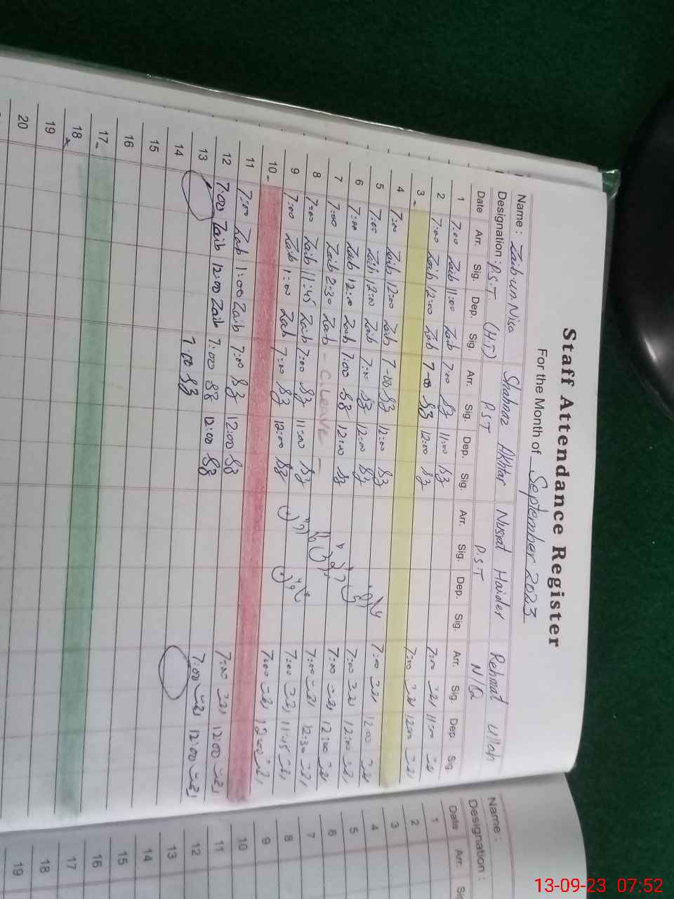 | Name: Za**** UnNi**** Designation: (School Headmaster's/Headmistress's) PST Phone/Cell Number: 03**** |
