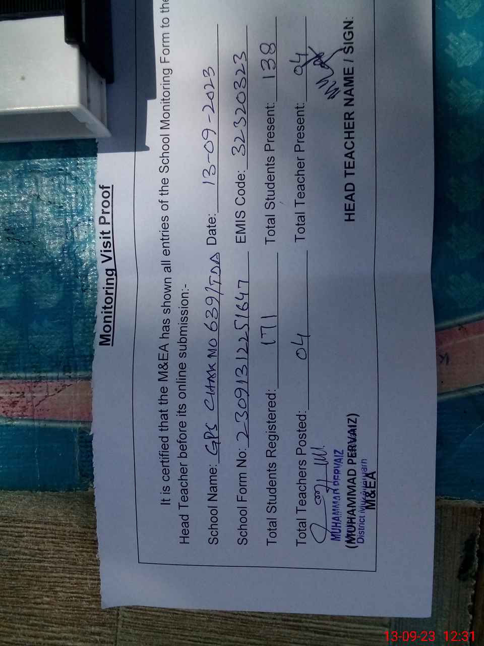 | EMIS Code: 32320323 | Name of School: GPS CHAK NO.639 TDA | |||
