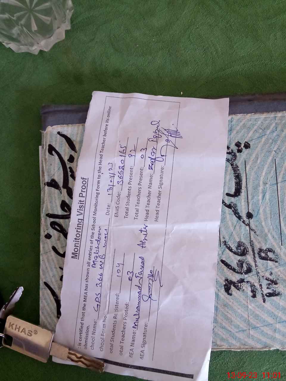 | Attendance Register | Head Teacher | MEA with School | Visit Proof |