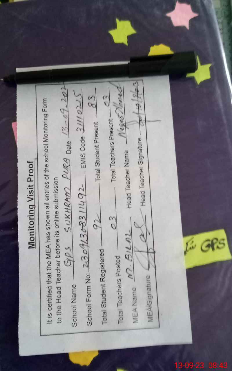 | EMIS Code: 31110215 | Name of School: GPS SUKHRAM PURA | |||