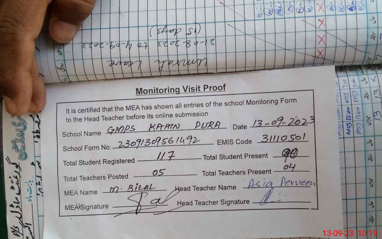 | EMIS Code: 31110501 | Name of School: GMPS KAHIN PURA | |||