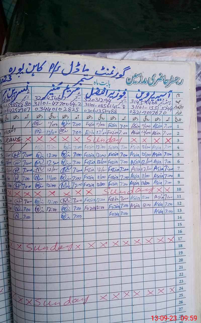 | Leave | Duty | Absent | Maternity | Medical | Ex- Pak |