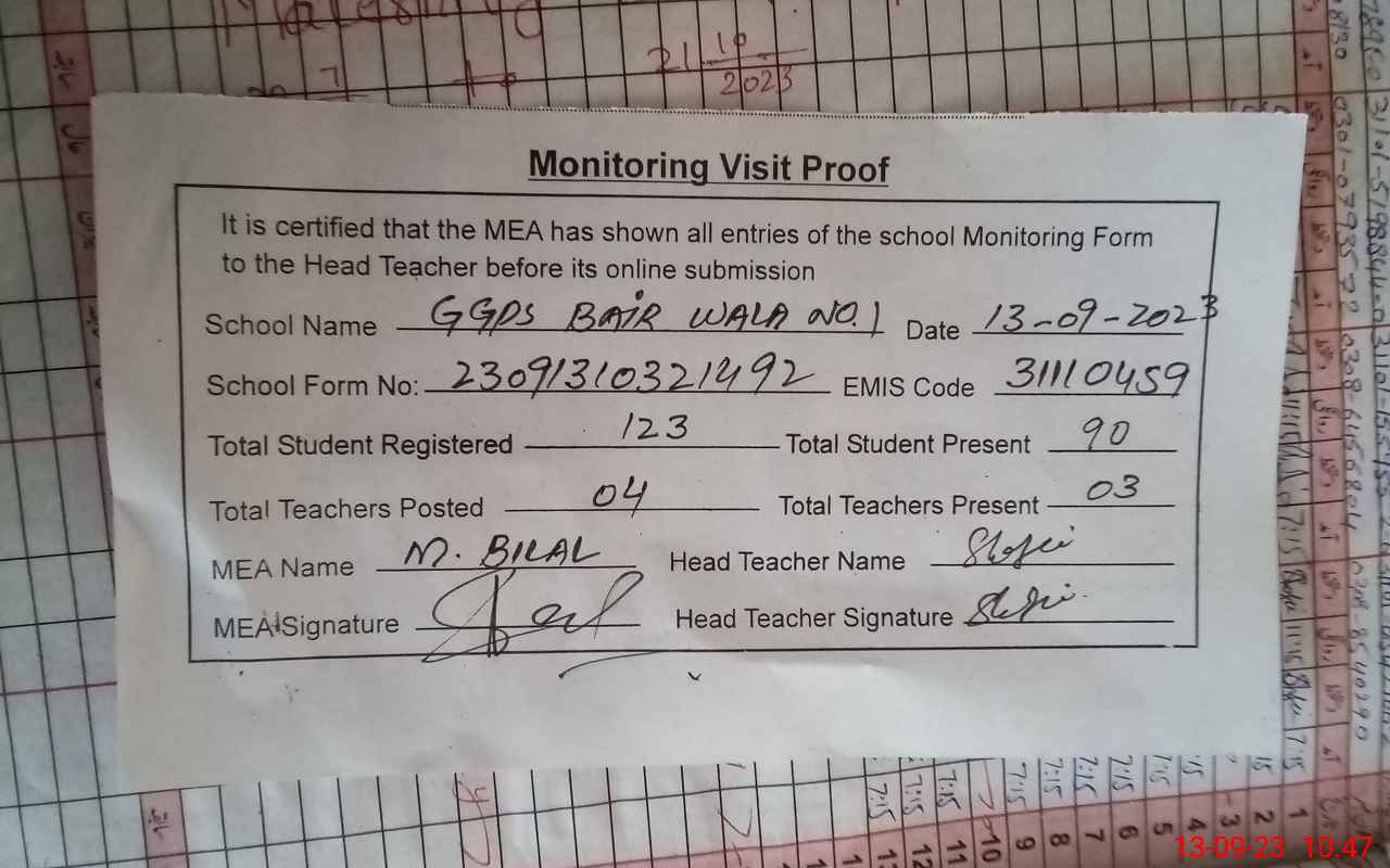 | EMIS Code: 31110459 | Name of School: GGPS BAIR WALA NO.1 | |||