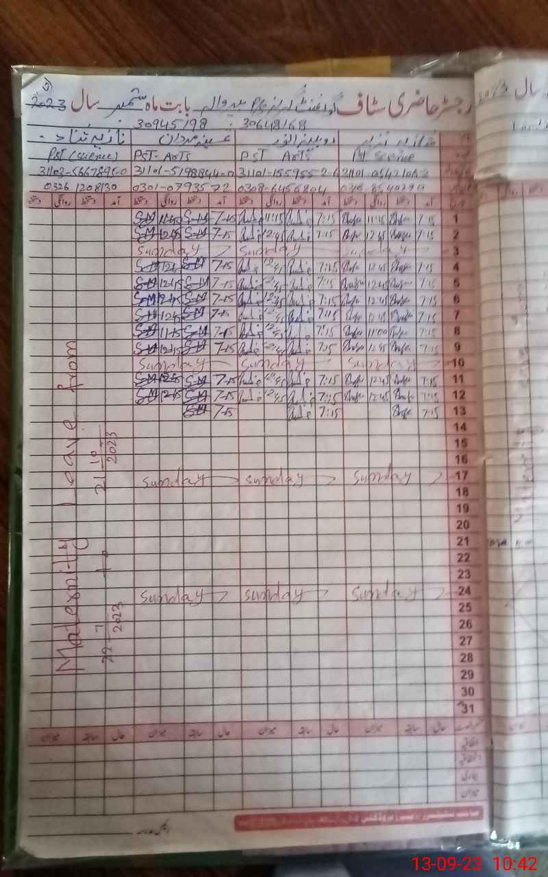 | CNIC | Full Name | Designation | R/C | Absence During Last Calender Month |