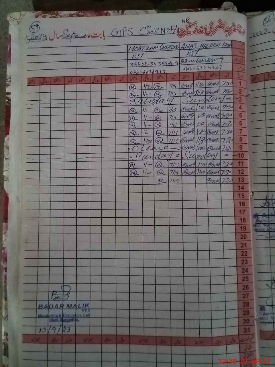 | Name: AN**** HA**** KH**** Designation: (School Headmaster's/Headmistress's) PST Phone/Cell Number: 03**** |