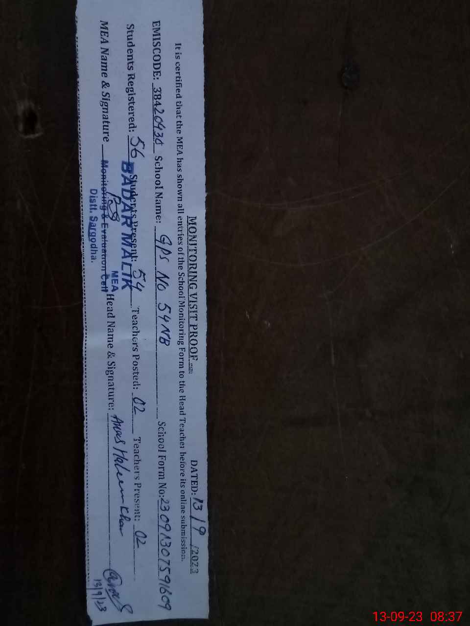 | EMIS Code: 38420430 | Name of School: GPS CHAK NO.54 NB | |||