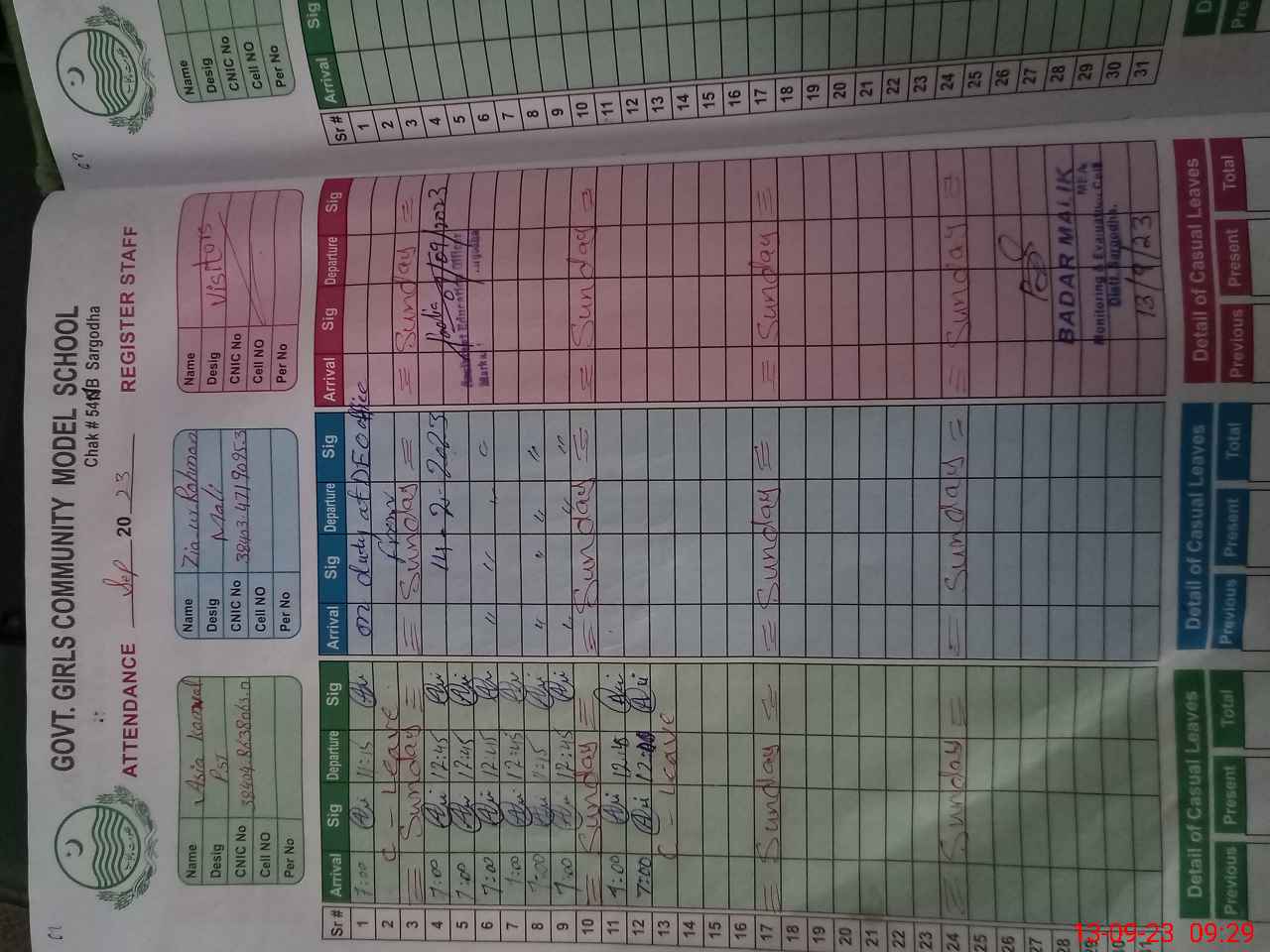 | Name: NA**** SH**** Designation: (School Headmaster's/Headmistress's) SST (Bio-Chm) Phone/Cell Number: 03**** |