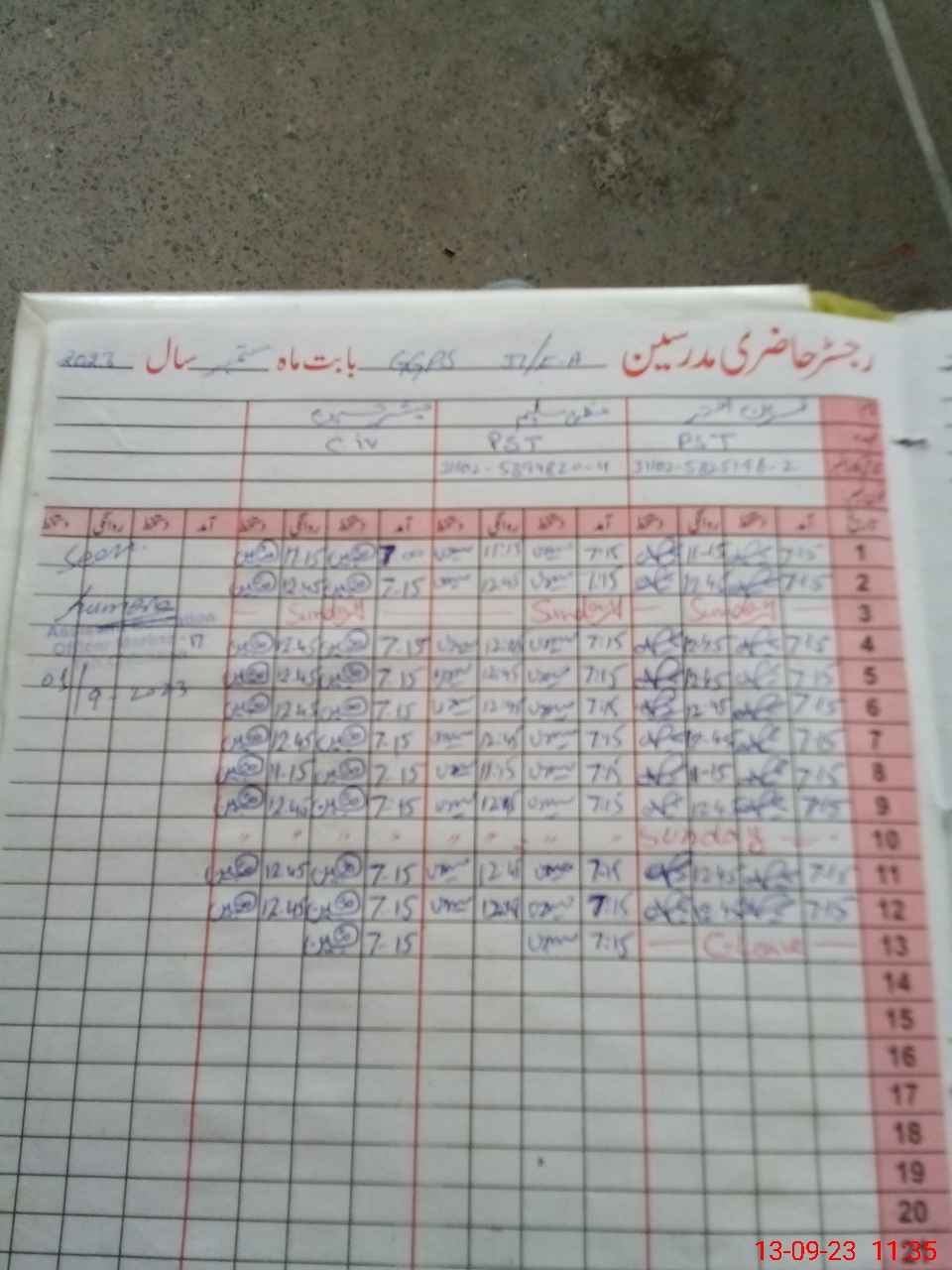 | Name: NA**** AK**** Designation: (School Headmaster's/Headmistress's) PST Phone/Cell Number: 03**** |
