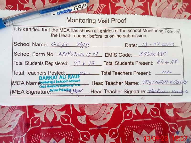 | EMIS Code: 39210335 | Name of School: GGPS CHAK 74/D | |||