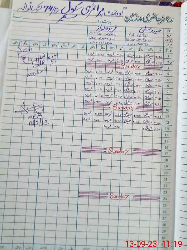 | Name: HA**** AL**** Designation: (School Headmaster's/Headmistress's) PST Phone/Cell Number: 03**** |