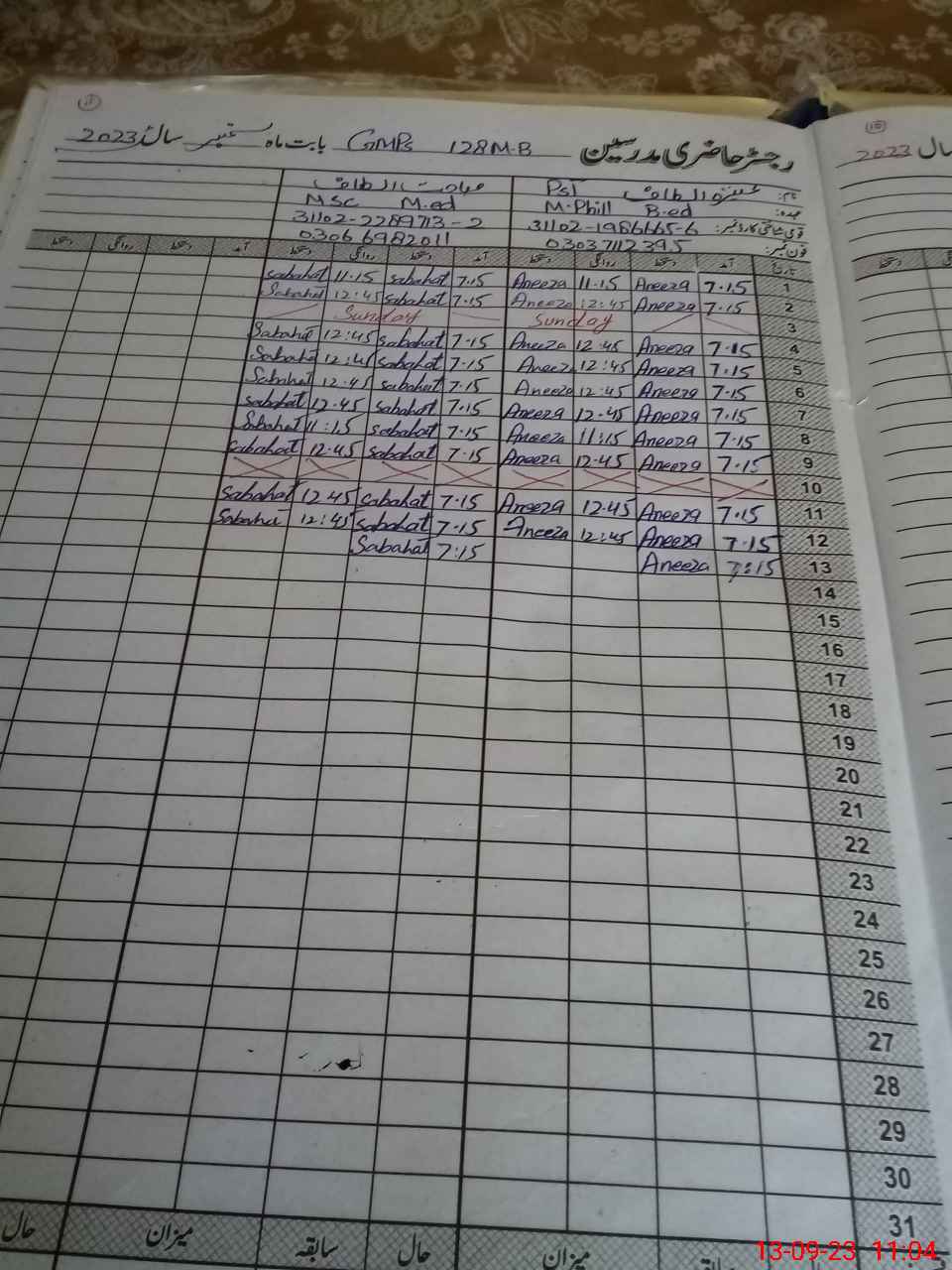 | Name: AN**** AL**** Designation: (School Headmaster's/Headmistress's) PST Phone/Cell Number: 03**** |