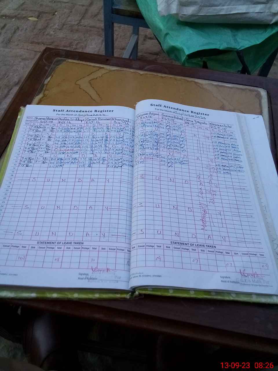 | Monitoring Date: 13-09-2023 | Start Time: 13-09-2023 07:58 AM | End Time: 13-09-2023 08:53 AM | Name of MEA: Kh**** Hu**** | |