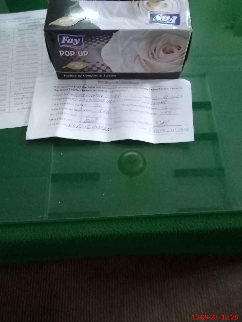 | Attendance Register | Head Teacher | MEA with School | Visit Proof |
