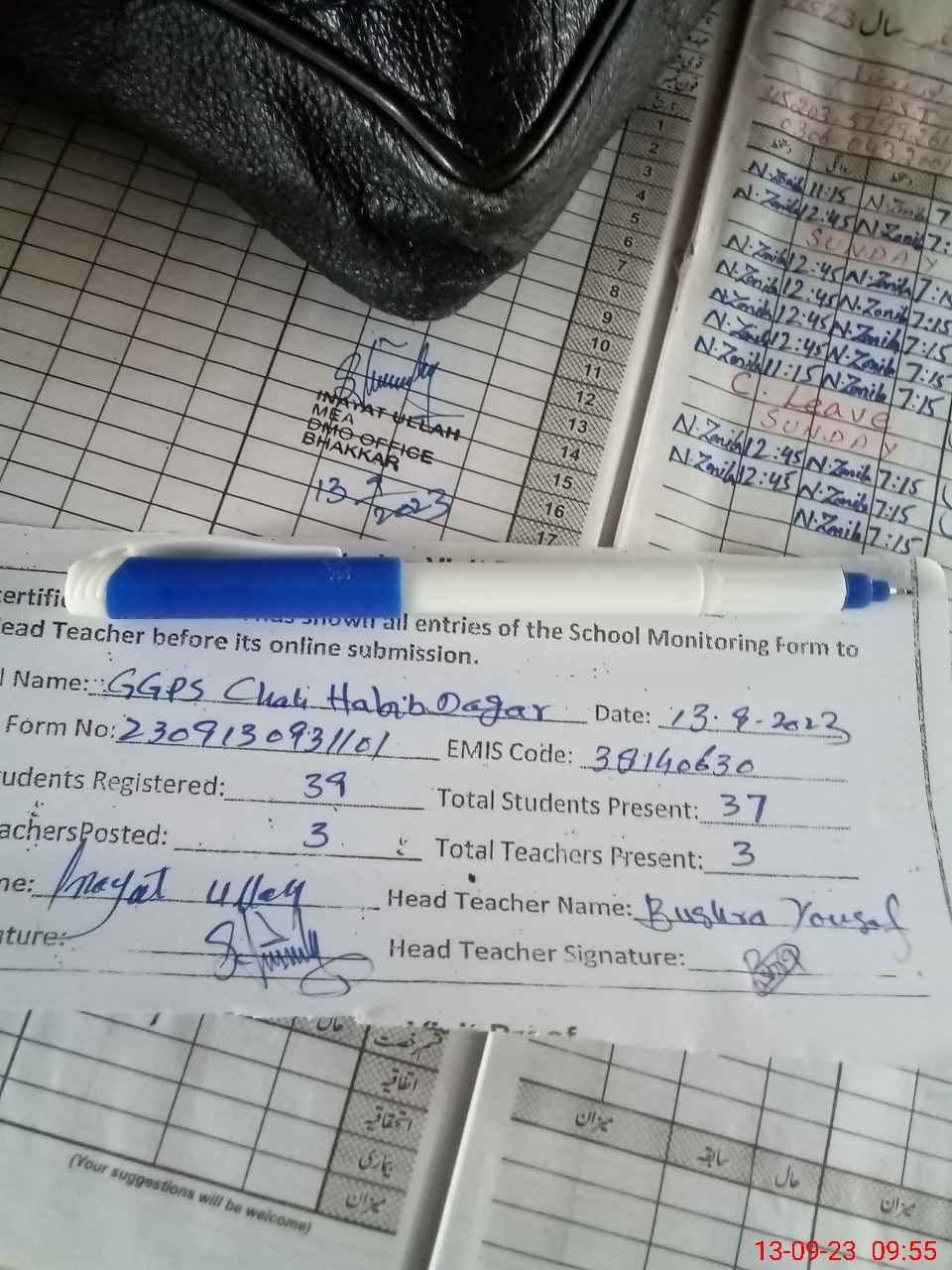 | Attendance Register | Head Teacher | MEA with School | Visit Proof |