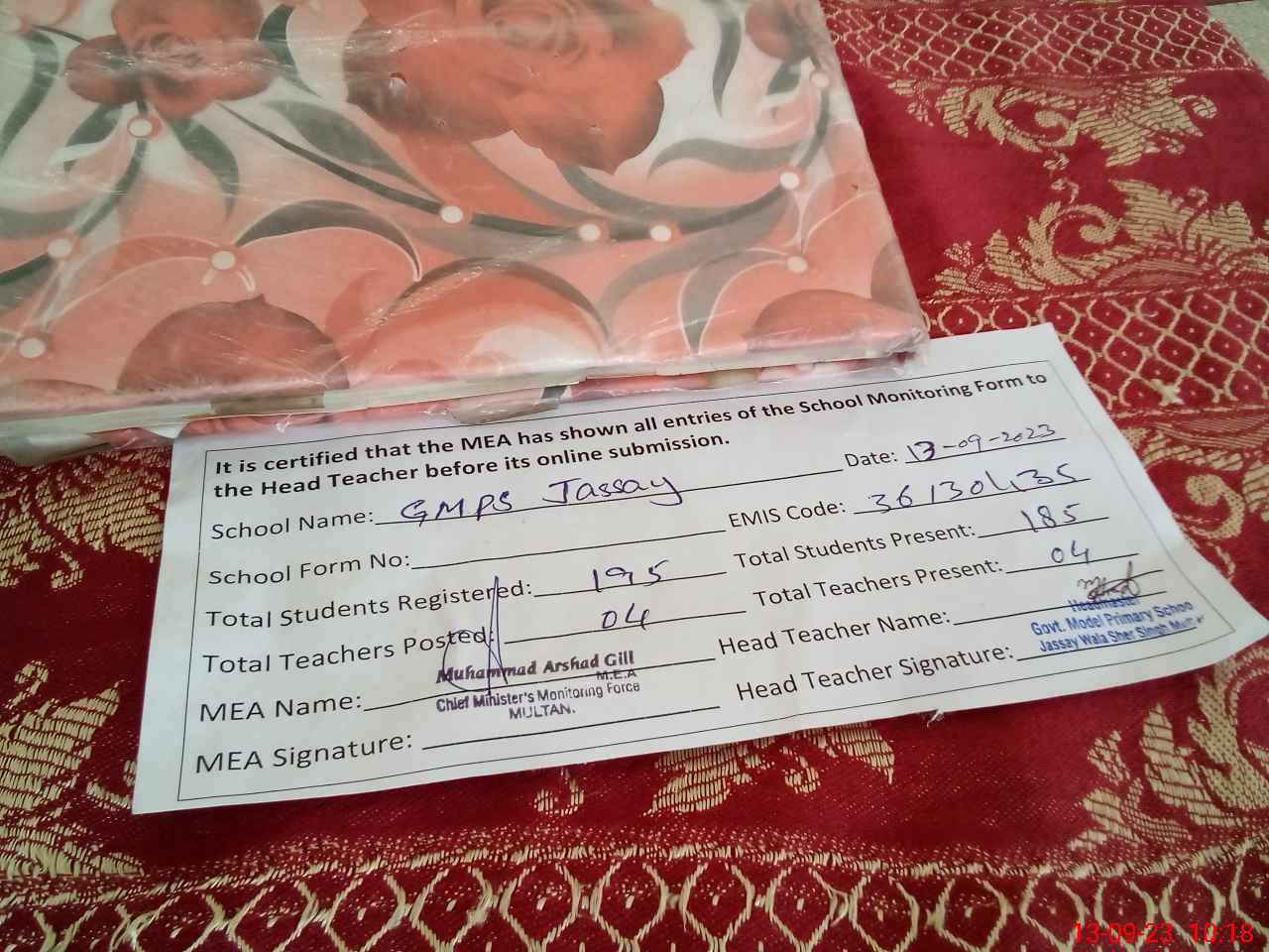 | EMIS Code: 36130435 | Name of School: GMPS JASSAY WALA MULTAN | |||