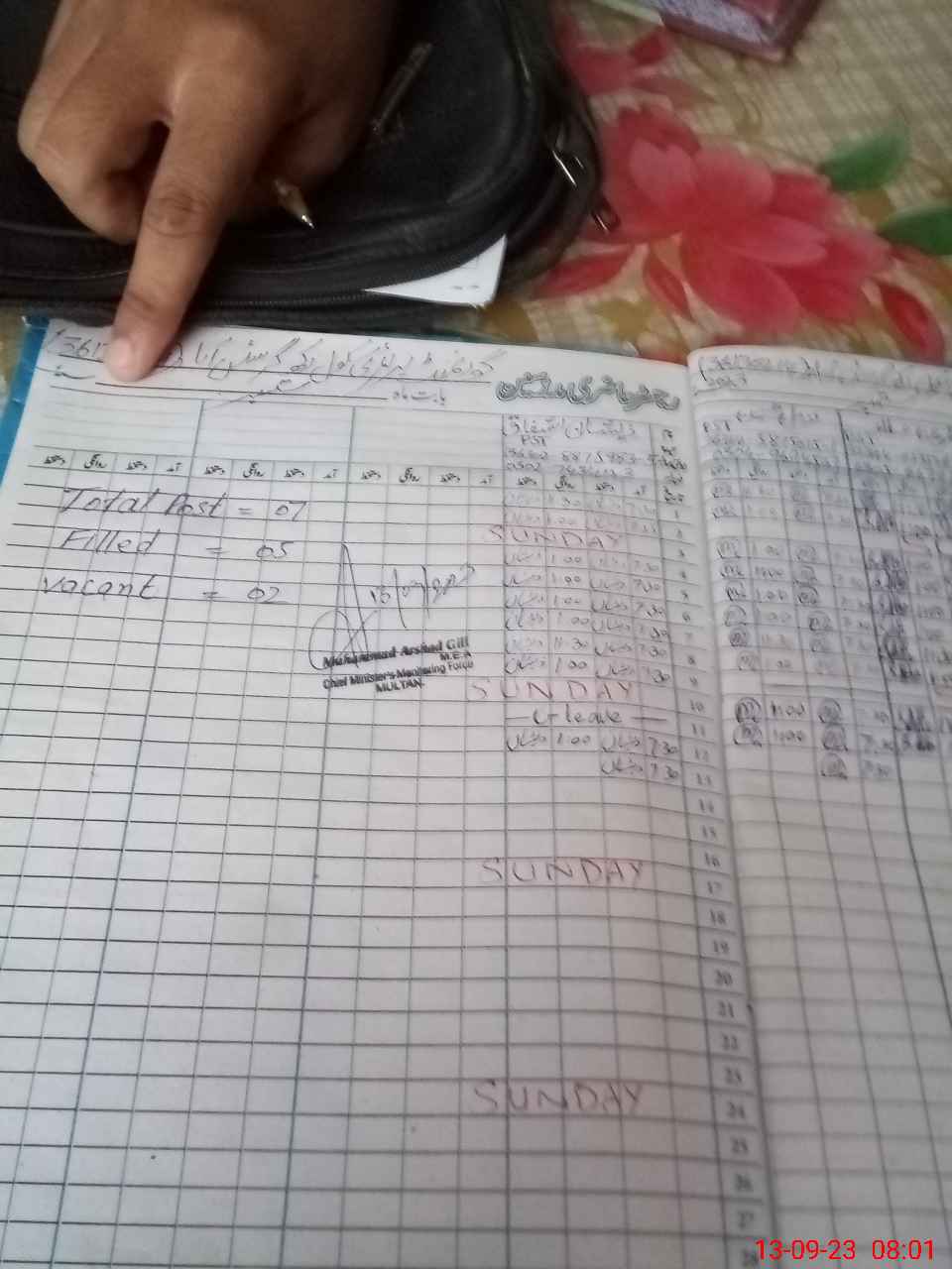 | Name: Mu**** Ri**** Designation: (School Headmaster's/Headmistress's) HEADMASTER Phone/Cell Number: 03**** |