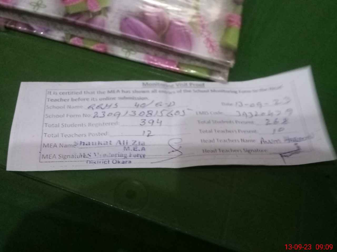 | Certified that this School was Inspected by the Undersigned MEA/DMO Today and the Information Stated Above is as Per Record. | |||||