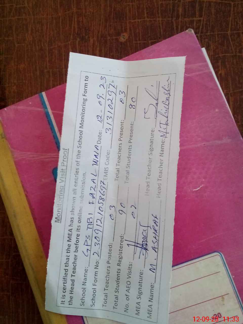 | EMIS Code: 31310297 | Name of School: GPS TIBI FAZIAL WALA | |||