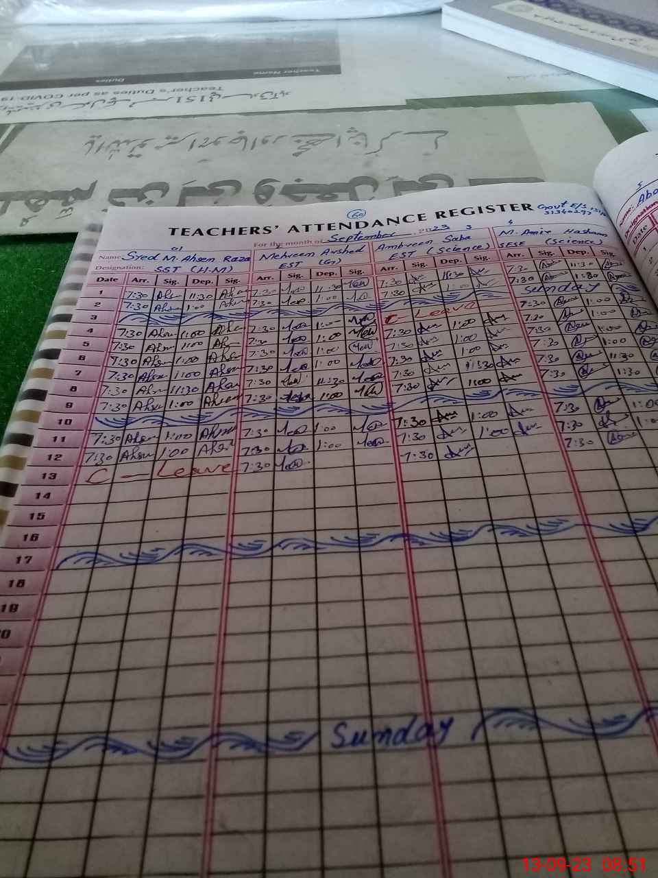 | 31**** | Sy**** Mu**** Ah**** Ra**** Gi**** | SST | Regular | 0 | 0 | 0 | 0 | 0 | 0 | 0 | 0 | 0 | Absent (Un-Authorized) |