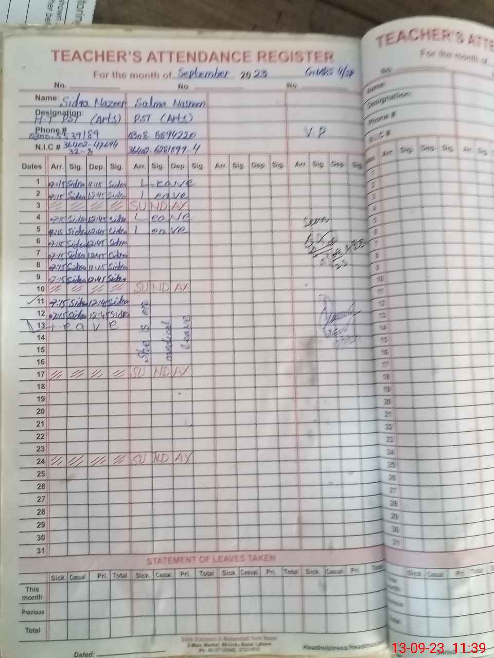 | Name: Si**** Na**** Designation: (School Headmaster's/Headmistress's) PST Phone/Cell Number: 03**** |