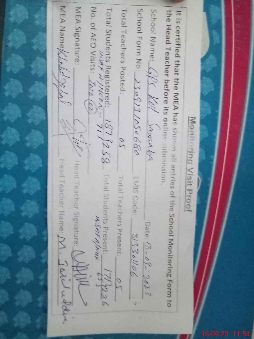 | EMIS Code: 31331106 | Name of School: GPS KOT SAMABA | |||