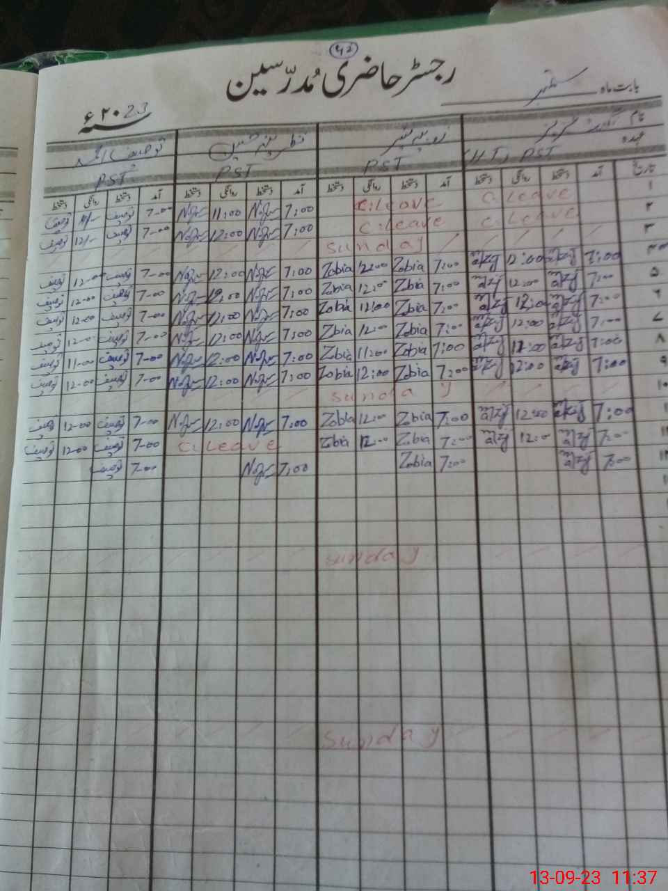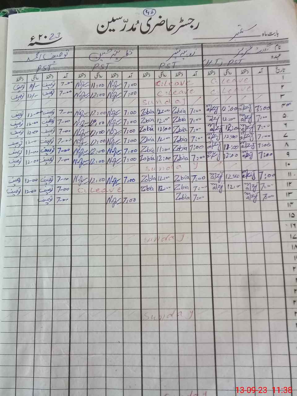 | CNIC | Full Name | Designation | R/C | Absence During Last Calender Month |