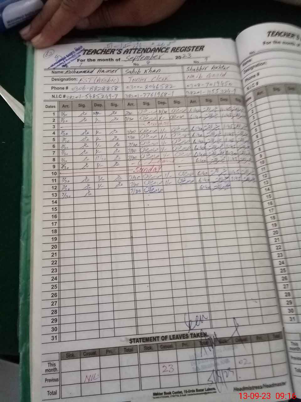 | Name: MIf**** Designation: (School Headmaster's/Headmistress's) SST Art Phone/Cell Number: 03**** |
