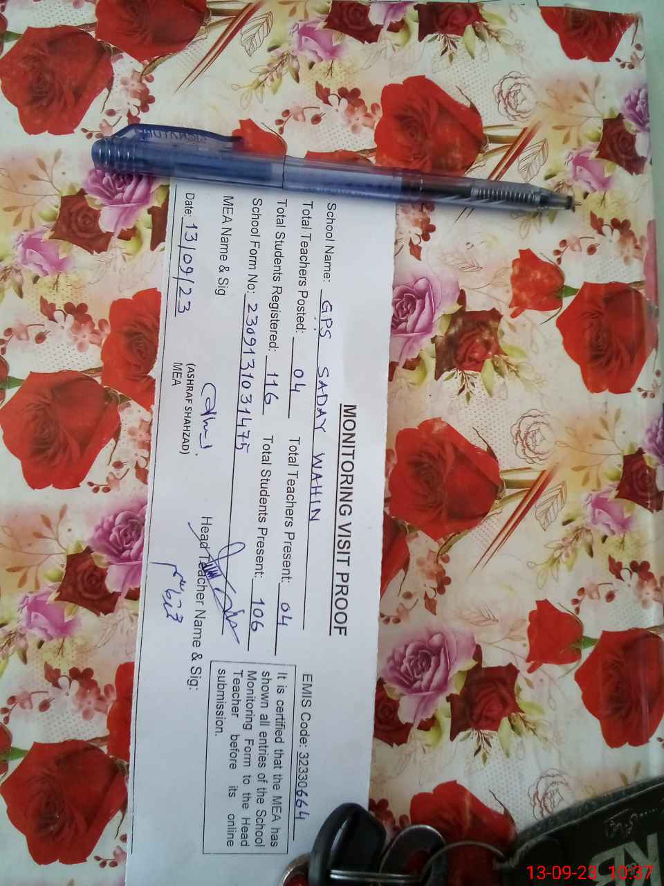 | EMIS Code: 32330664 | Name of School: GPS SADHAY WAHIN | |||