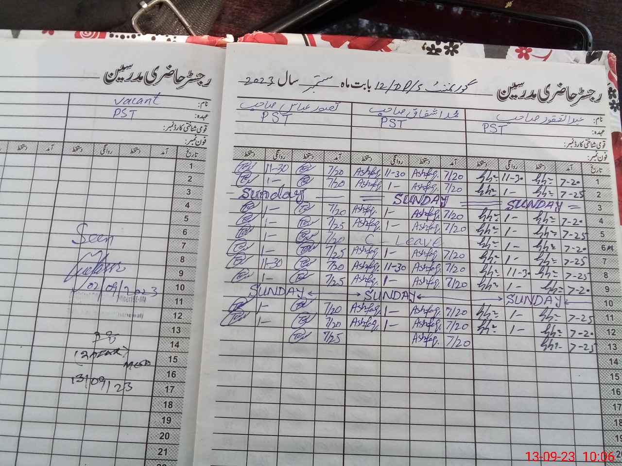 | CNIC | Full Name | Designation | R/C | Absence During Last Calender Month |