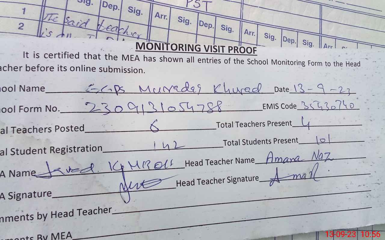 | EMIS Code: 35430749 | Name of School: GGPS MURADAY KHURD | |||