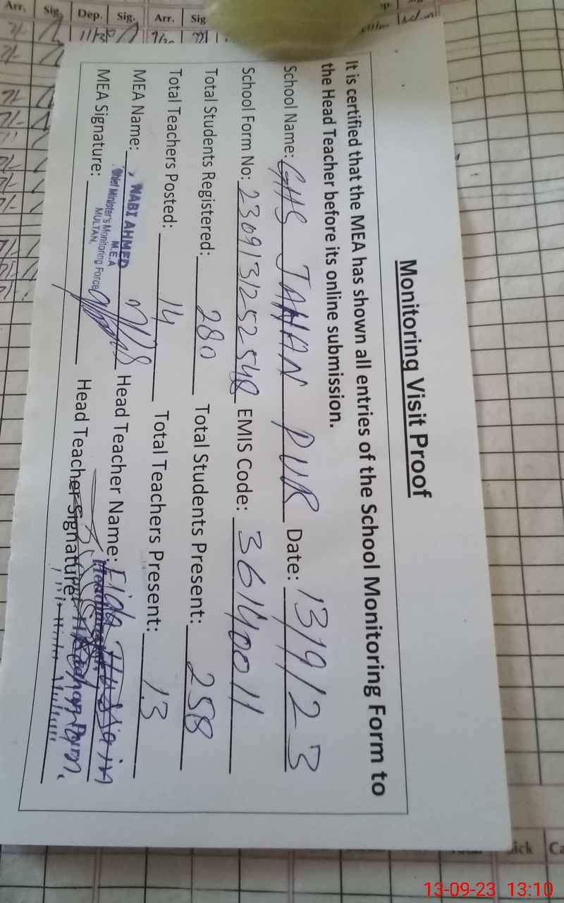 | EMIS Code: 36140011 | Name of School: GHS JAHAN PUR JALALPUR PIRWALA | |||