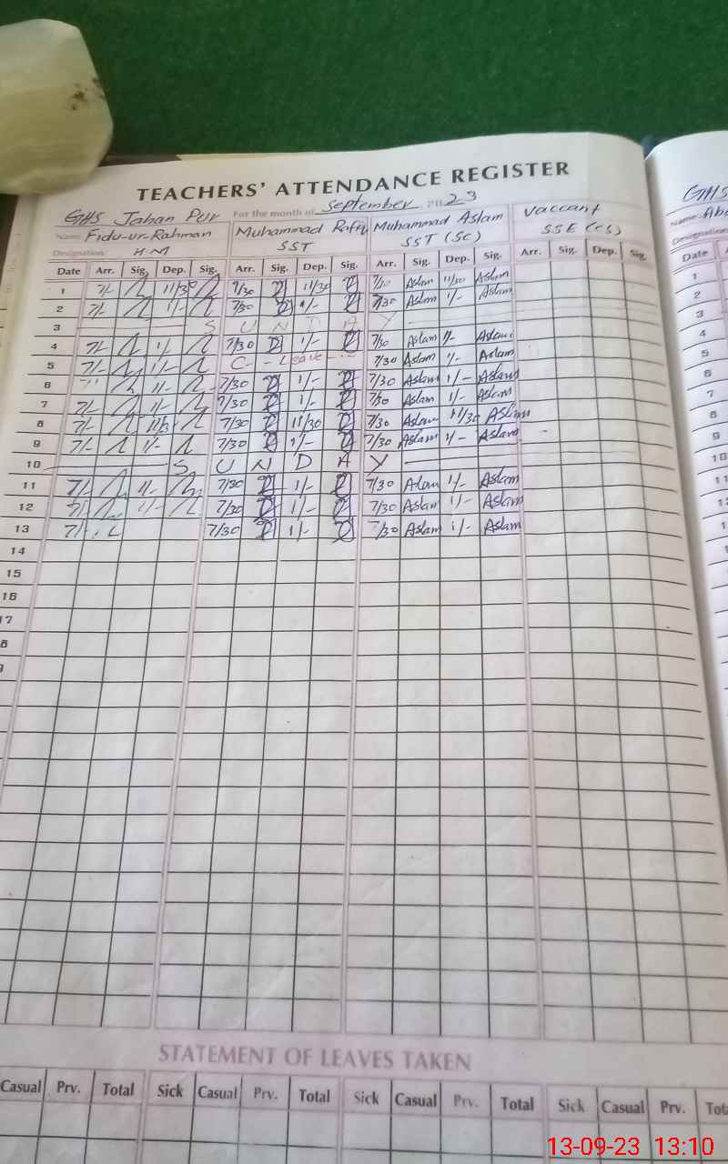 | CNIC | Full Name | Designation | R/C | Absence During Last Calender Month |