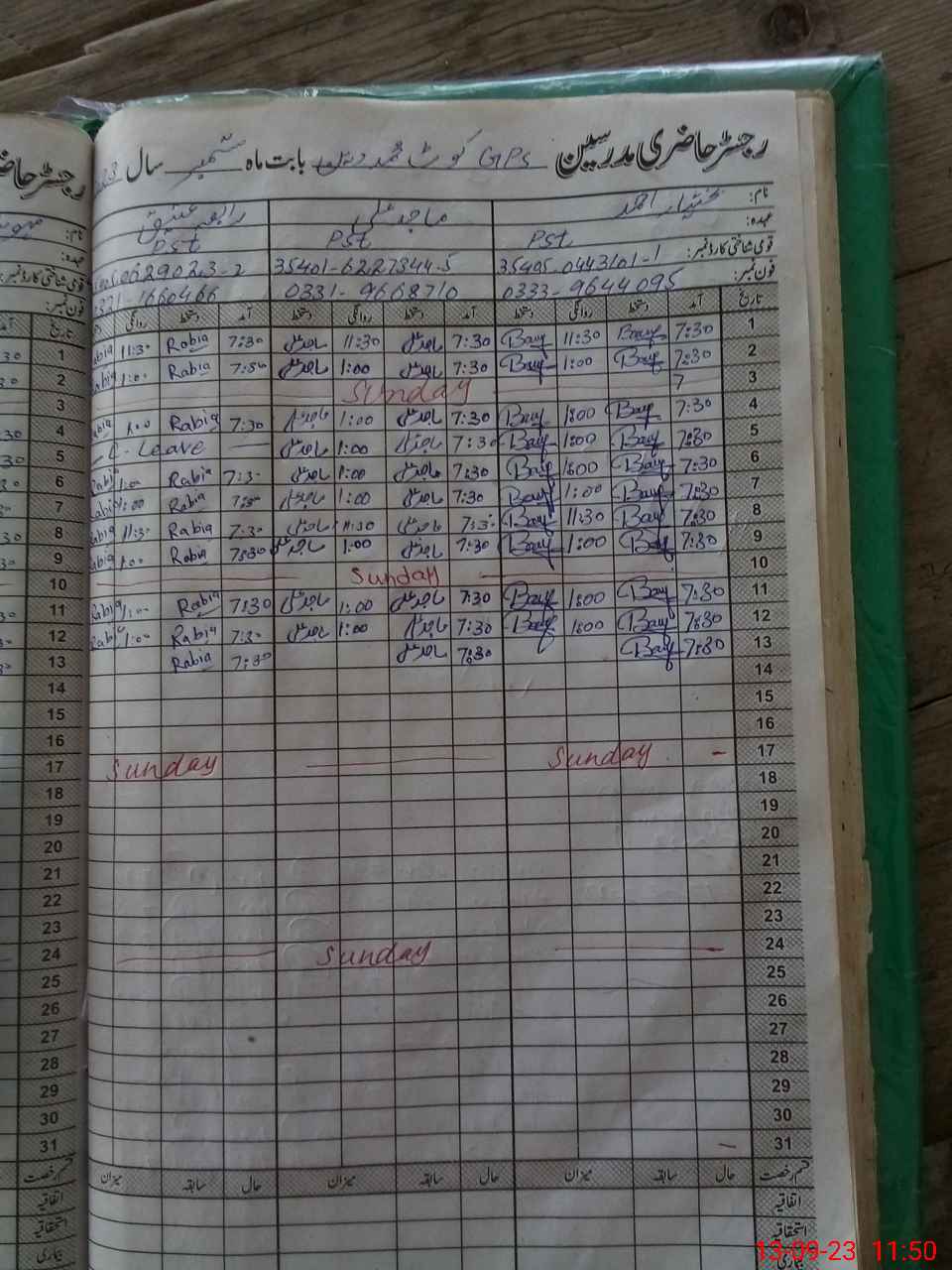 | CNIC | Full Name | Designation | R/C | Absence During Last Calender Month |