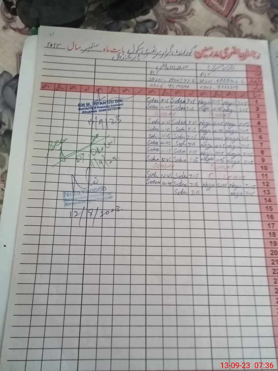 | Name: Si**** Ri**** Designation: (School Headmaster's/Headmistress's) PST Phone/Cell Number: 03**** |