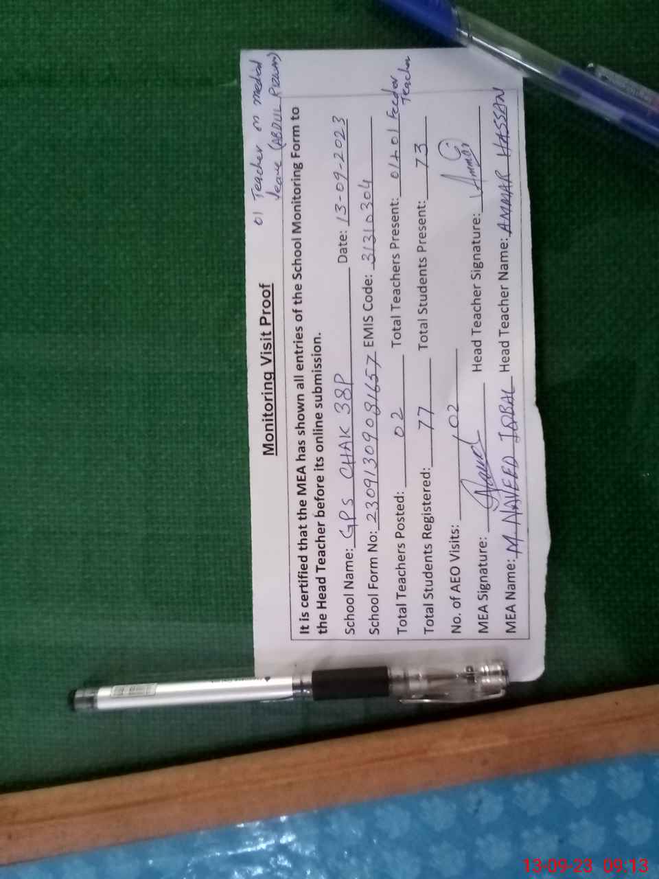| EMIS Code: 31310304 | Name of School: GPS CHAK 38/P | |||