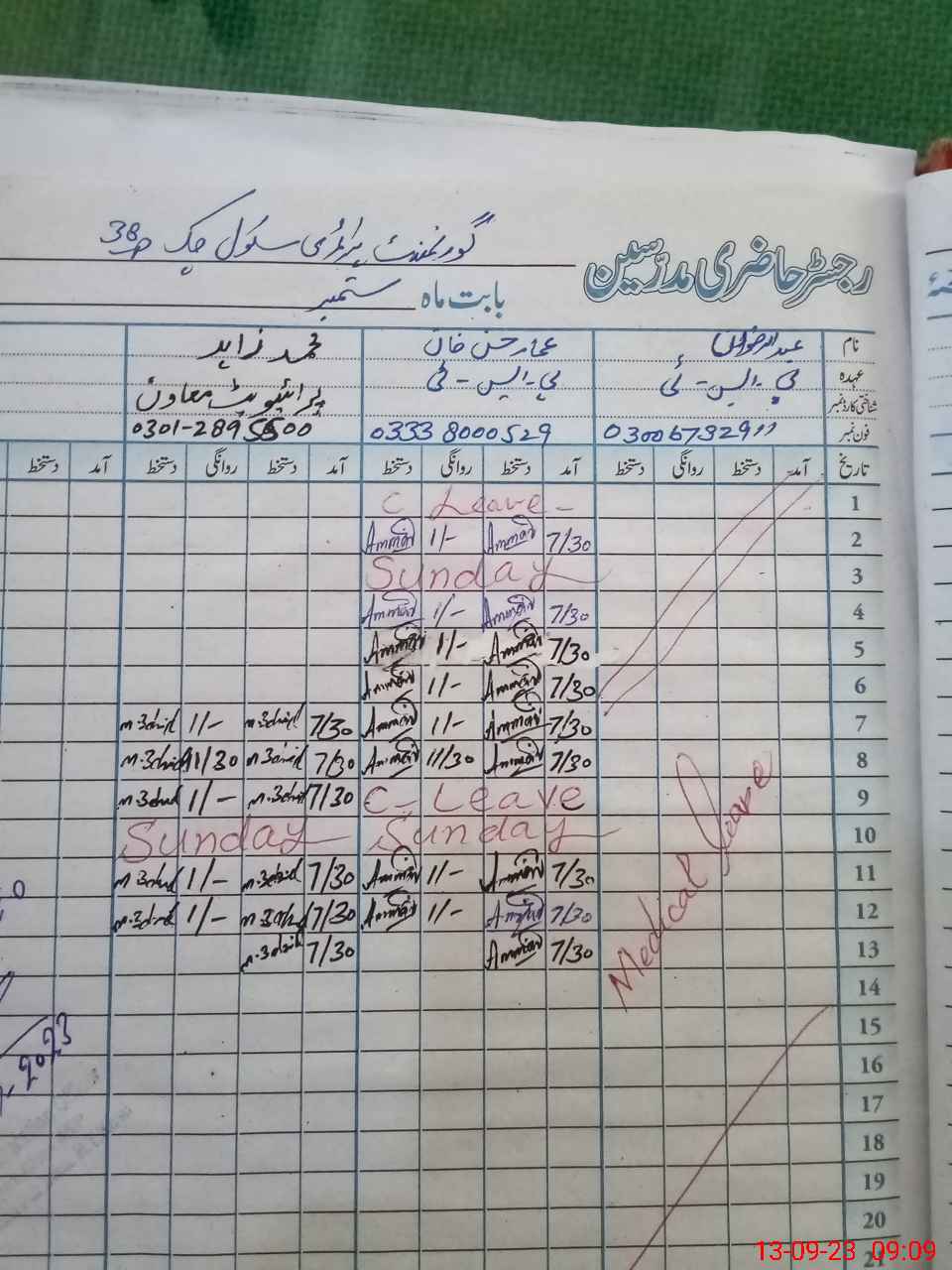 | Name: AB**** RI**** Designation: (School Headmaster's/Headmistress's) PST Phone/Cell Number: 03**** |