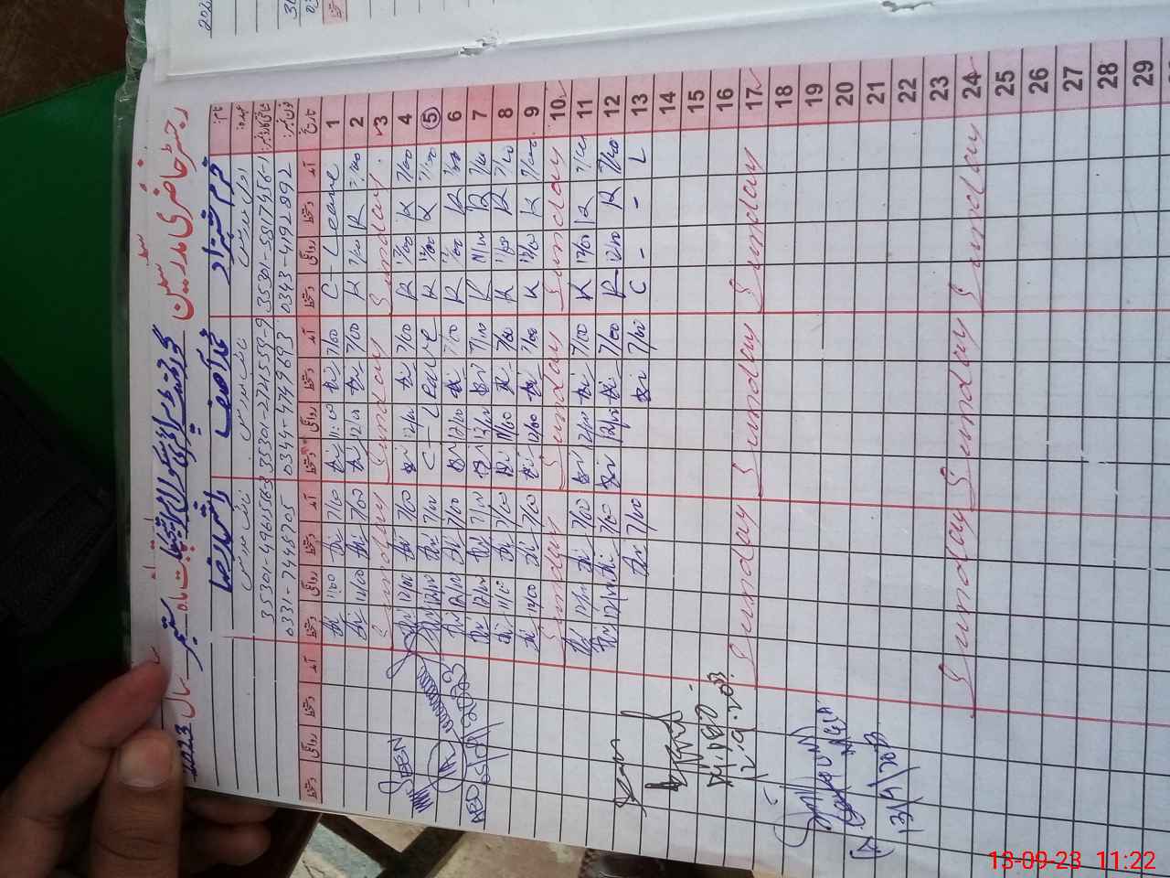 | Name: Kh**** Sh**** Designation: (School Headmaster's/Headmistress's) PST Phone/Cell Number: 03**** |