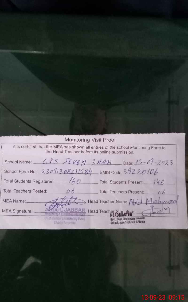 | EMIS Code: 39220106 | Name of School: GPS JEVEN SHAH | |||