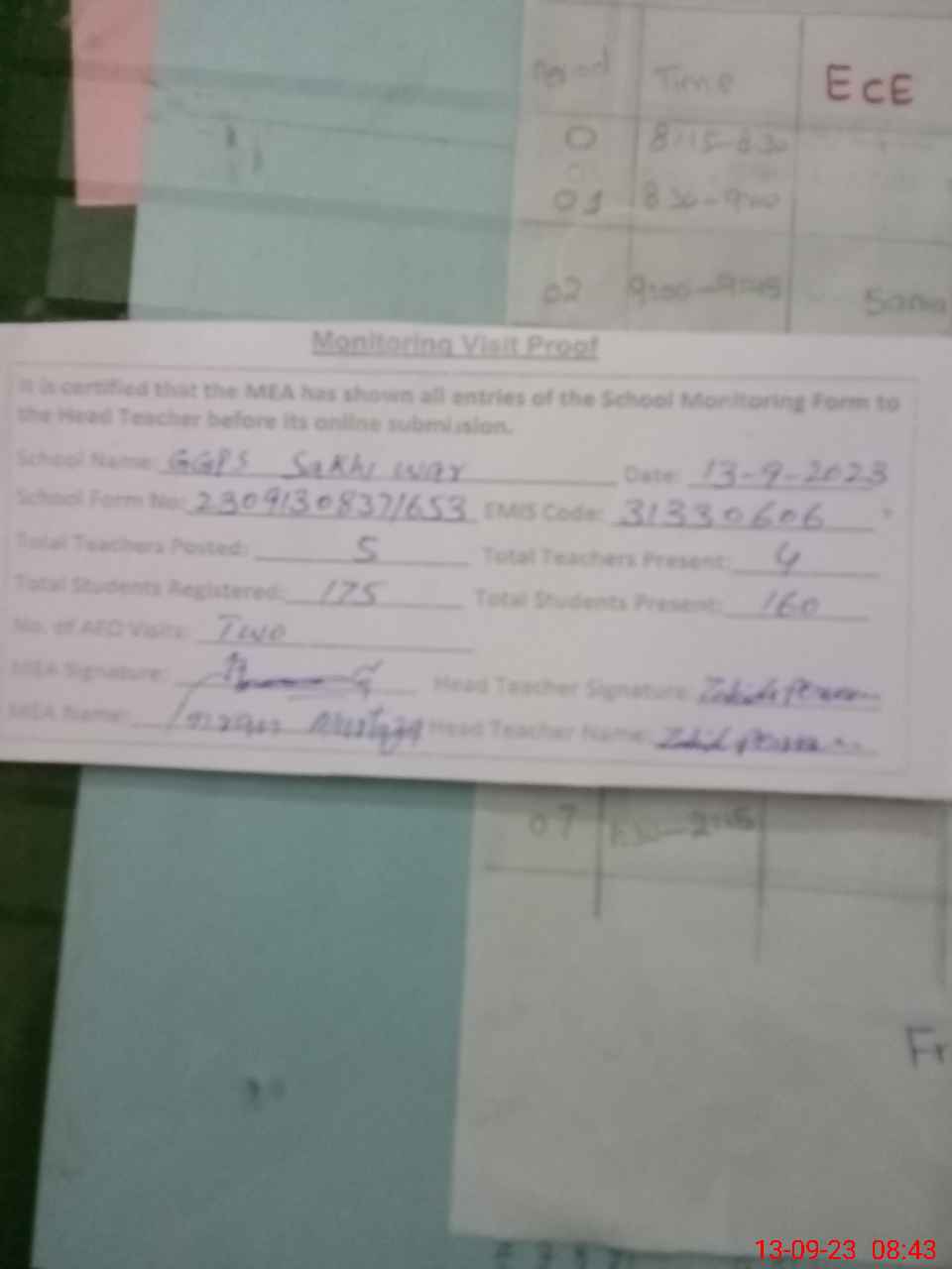 | EMIS Code: 31330606 | Name of School: GGPS SAKHI WAR | |||