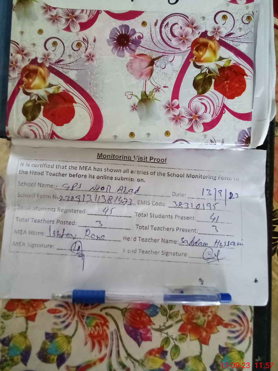 | EMIS Code: 38310195 | Name of School: GPS NOOR ABAD | |||
