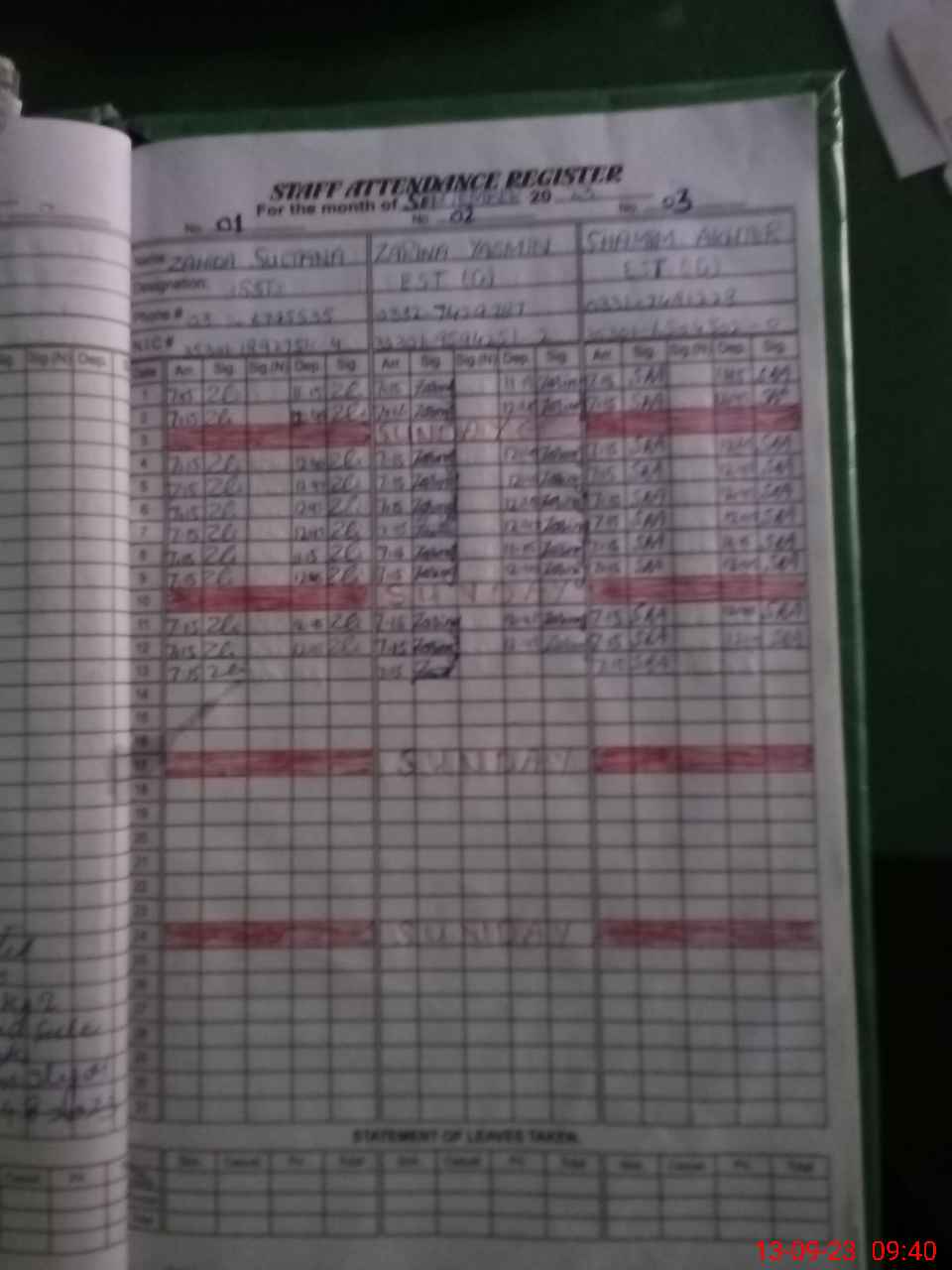 | Name: ZA**** SU**** Designation: (School Headmaster's/Headmistress's) SST GEN Phone/Cell Number: 03**** |