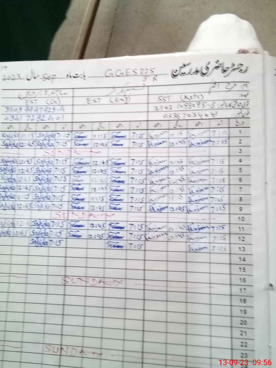 | Name: FA**** AN**** Designation: (School Headmaster's/Headmistress's) S.S.T. GEN Phone/Cell Number: 03**** |