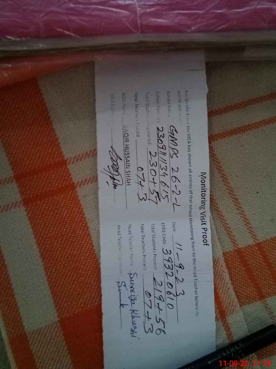 | Certified that this School was Inspected by the Undersigned MEA/DMO Today and the Information Stated Above is as Per Record. | |||||