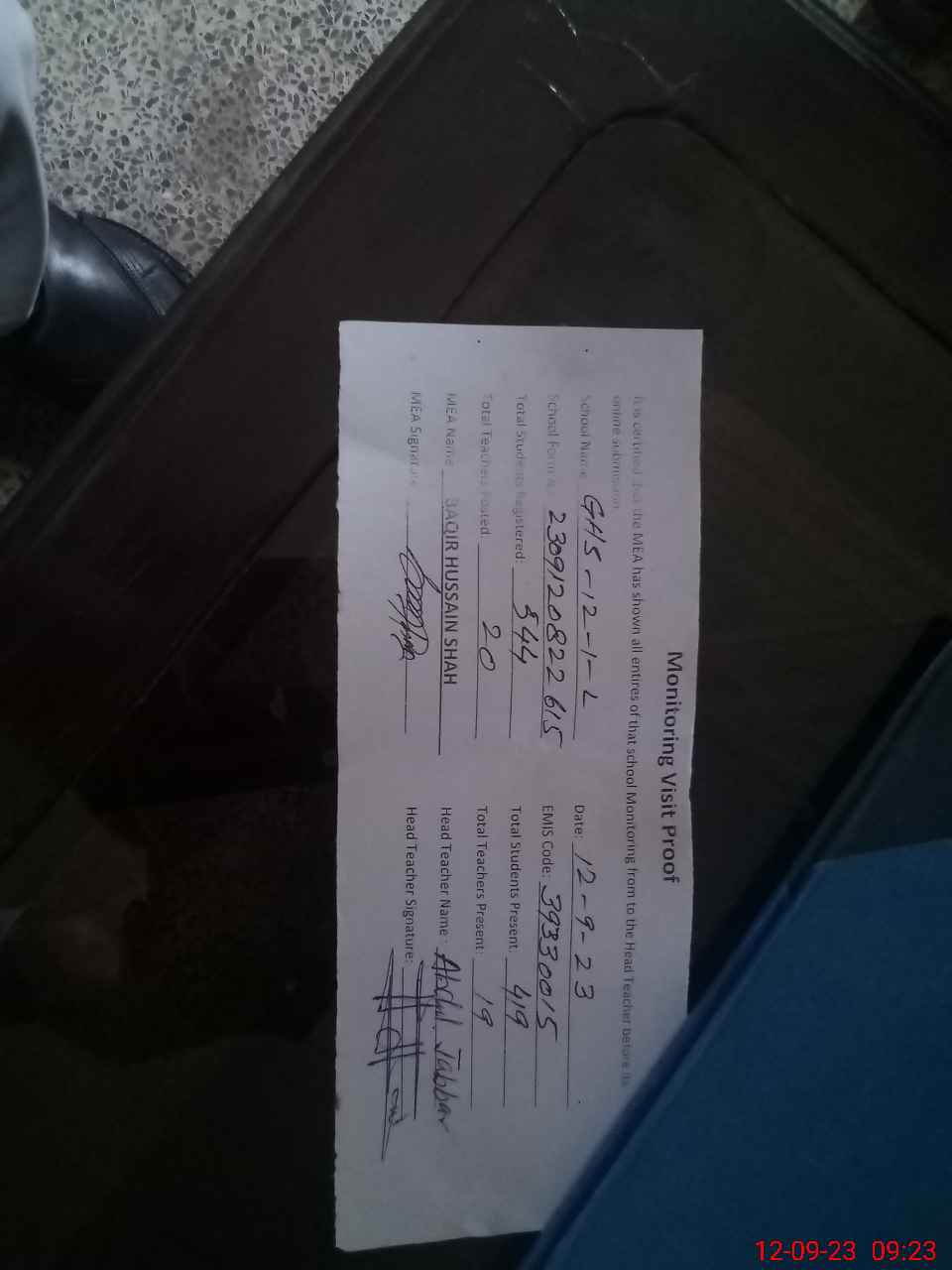 | Remarks (Use Separate Page if Required): AbdulJabbar HM transfered in not in MEA TAB teacher list present | |||||