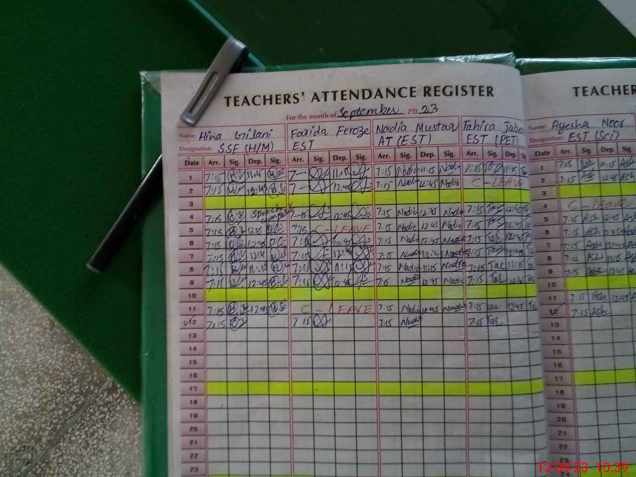 | CNIC | Full Name | Designation | R/C | Absence During Last Calender Month |