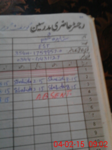 | Name: Na**** Ir**** Designation: (School Headmaster's/Headmistress's) SST Science Phone/Cell Number: 03**** |