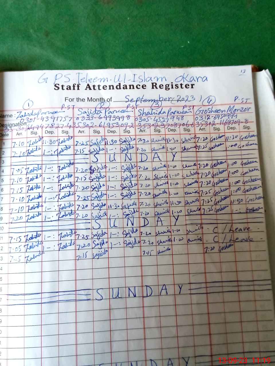 | Name: Sh**** Pa**** Designation: (School Headmaster's/Headmistress's) PST Phone/Cell Number: 03**** |