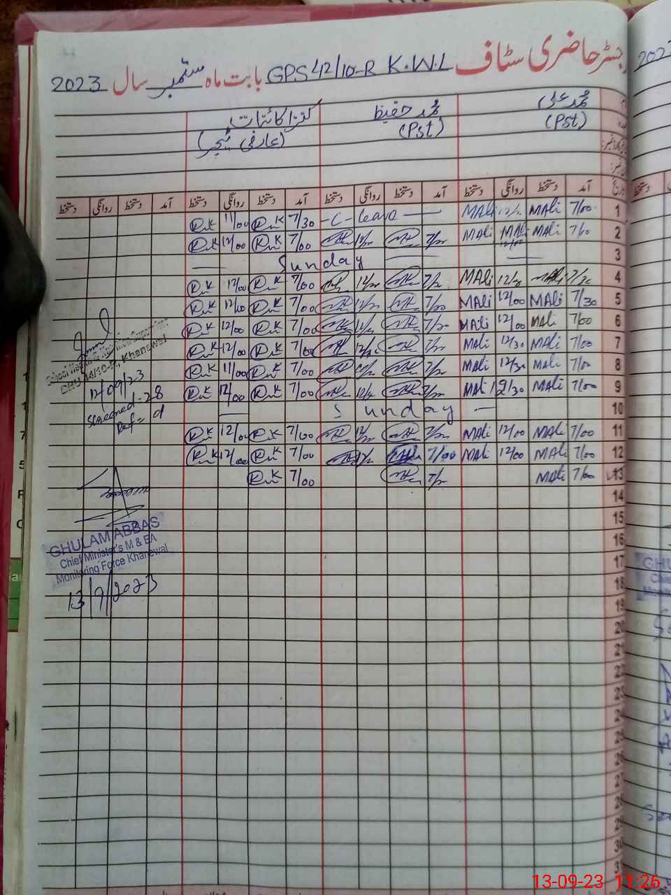 | Name: MU**** AL**** Designation: (School Headmaster's/Headmistress's) PST Phone/Cell Number: 03**** |