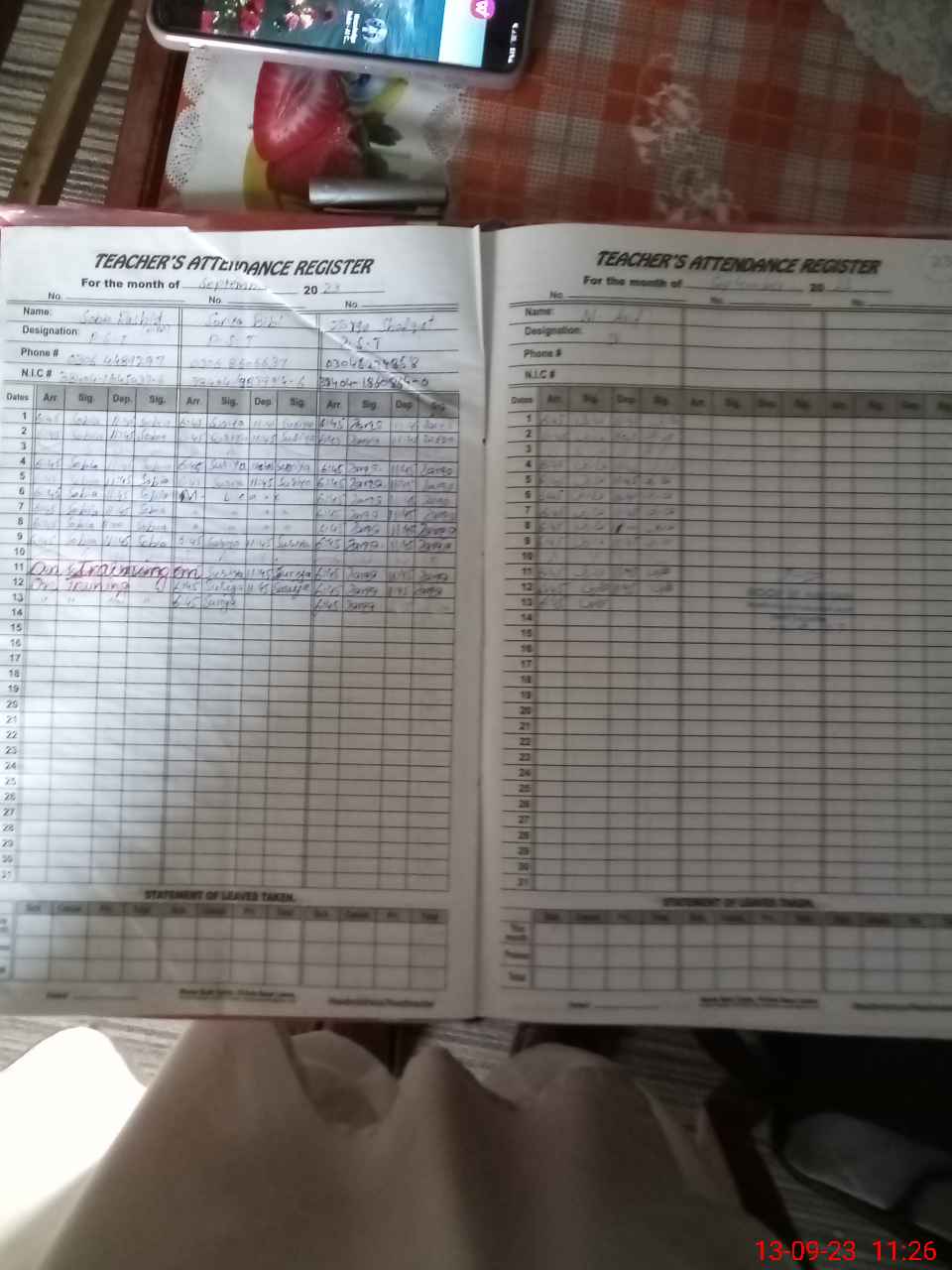 | Name: SO**** RA**** Designation: (School Headmaster's/Headmistress's) PST Phone/Cell Number: 03**** |